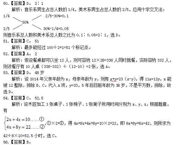鴻途解析:老李家的人均水費(fèi)為210×5÷6=175元,老張家的人均水費(fèi)為(180×5+30×7)÷5=222元,則所求為222-175=47元,選C。