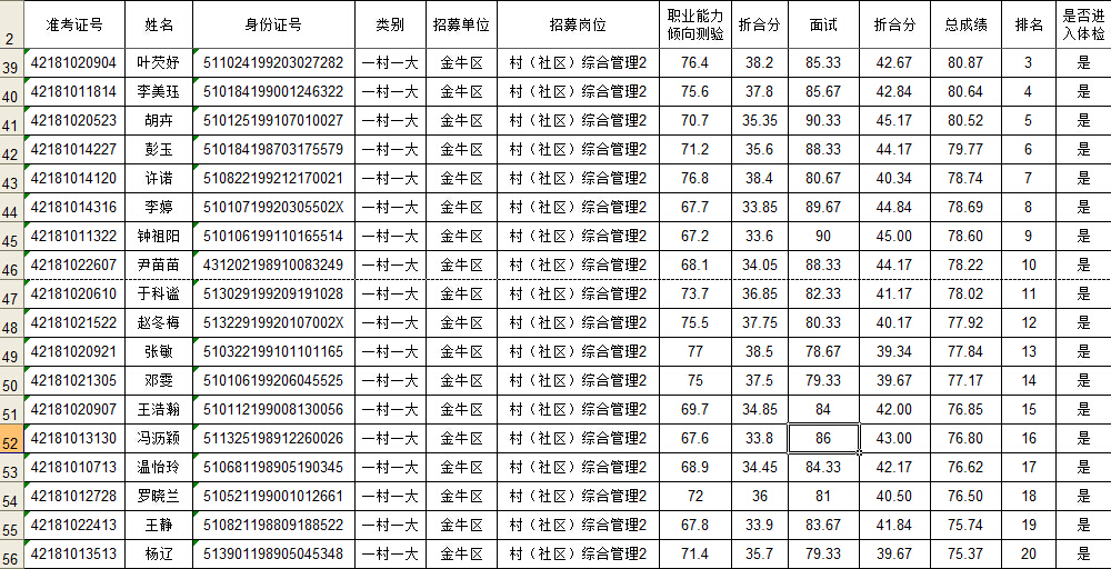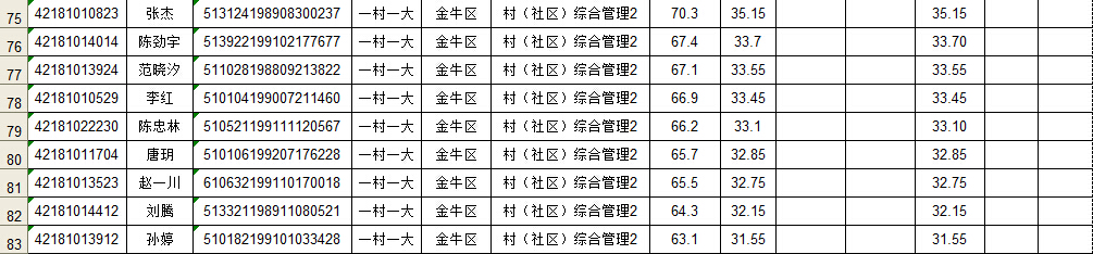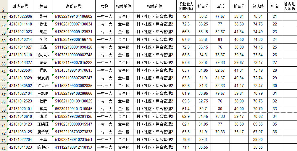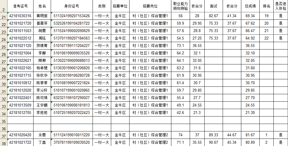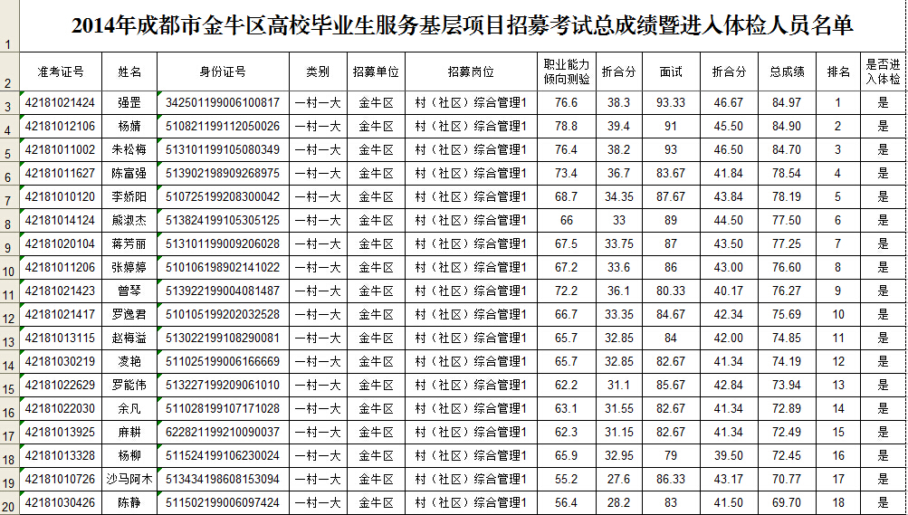 附件: 2014年成都市金牛區(qū)高校畢業(yè)生服務(wù)基層項(xiàng)目招募考試總成績(jī)暨進(jìn)入體檢人員名單