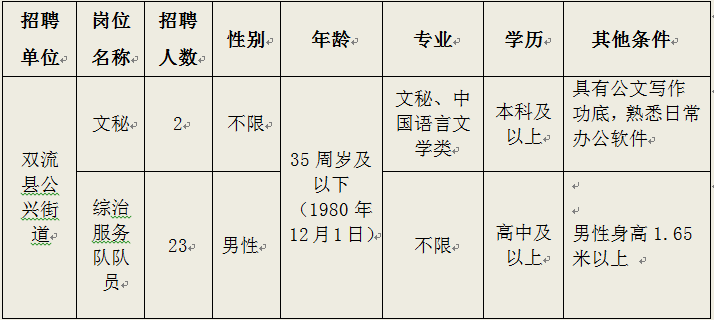 成都天府新區(qū)雙流人才服務(wù)有限公司因工作需要,現(xiàn)向社會公開招聘派遣至雙流縣公興街道工作人員25名,F(xiàn)將具體事項(xiàng)公告如下:
