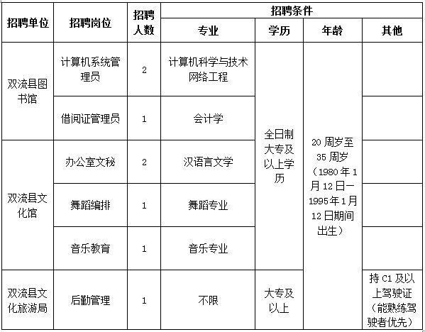 1、所聘工作人員為成都天府新區(qū)雙流人才服務(wù)有限公司派遣制員工。雙流縣文化旅游局及下屬單位負(fù)責(zé)日常管理和考核工作。