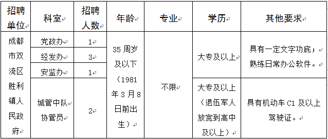 成都天府新區(qū)雙流人才服務有限公司因工作需要,現面向社會公開招聘派遣至成都市雙流區(qū)勝利鎮(zhèn)人民政府的工作人員7名,F將具體事項公告如下: