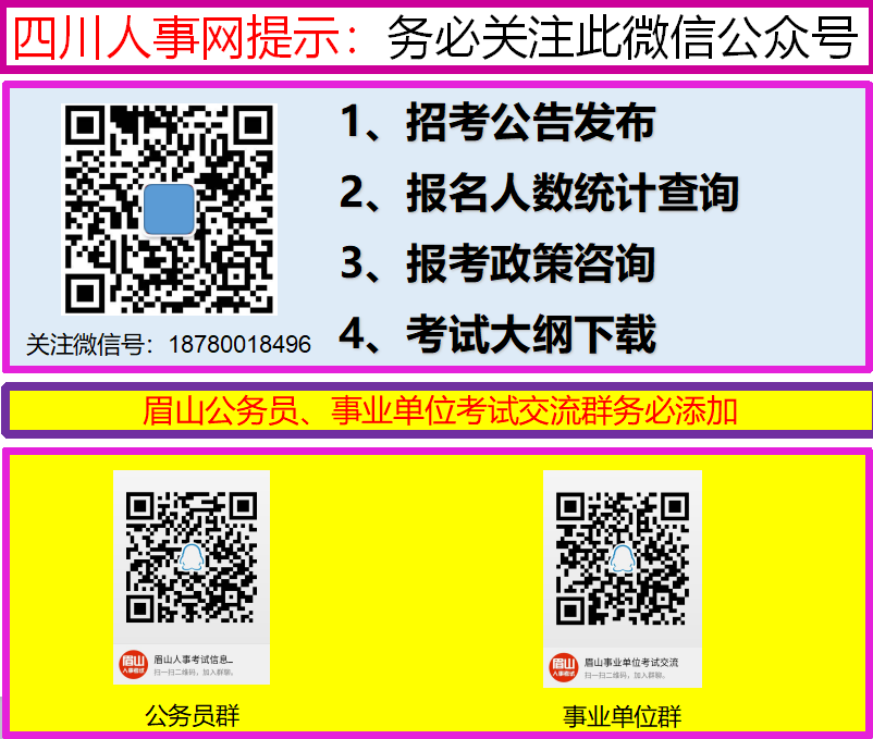1、招考過程中有關調整、補充、提示等事項,在眉山人事考試網(http://www.mspta.gov.cn)上公告。