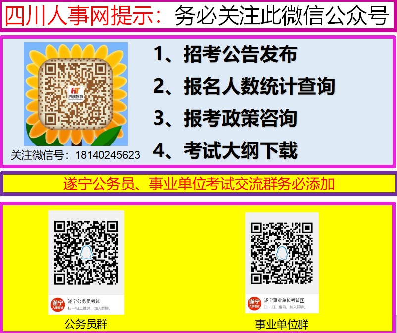 (一)公招過程中如有調(diào)整、補充、提示等事項,由縣人社局通過在“遂寧市人力資源和社會保障局,射洪縣人力資源和社會保障局”網(wǎng)站上等方式予以公告。因報考者不主動、不按要求登錄相關(guān)網(wǎng)站查閱相關(guān)信息,導(dǎo)致本人未能按要求參加考察、聘用等的,責(zé)任自負。
