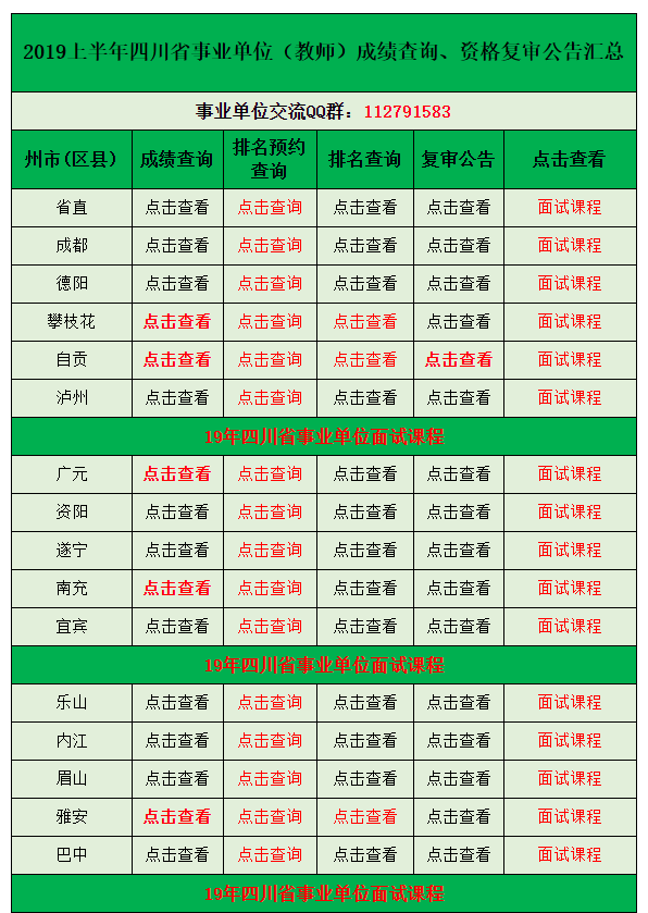 2019上半年廣安事業(yè)單位(教師)招考信息、成績(jī)查詢、復(fù)審公告匯總