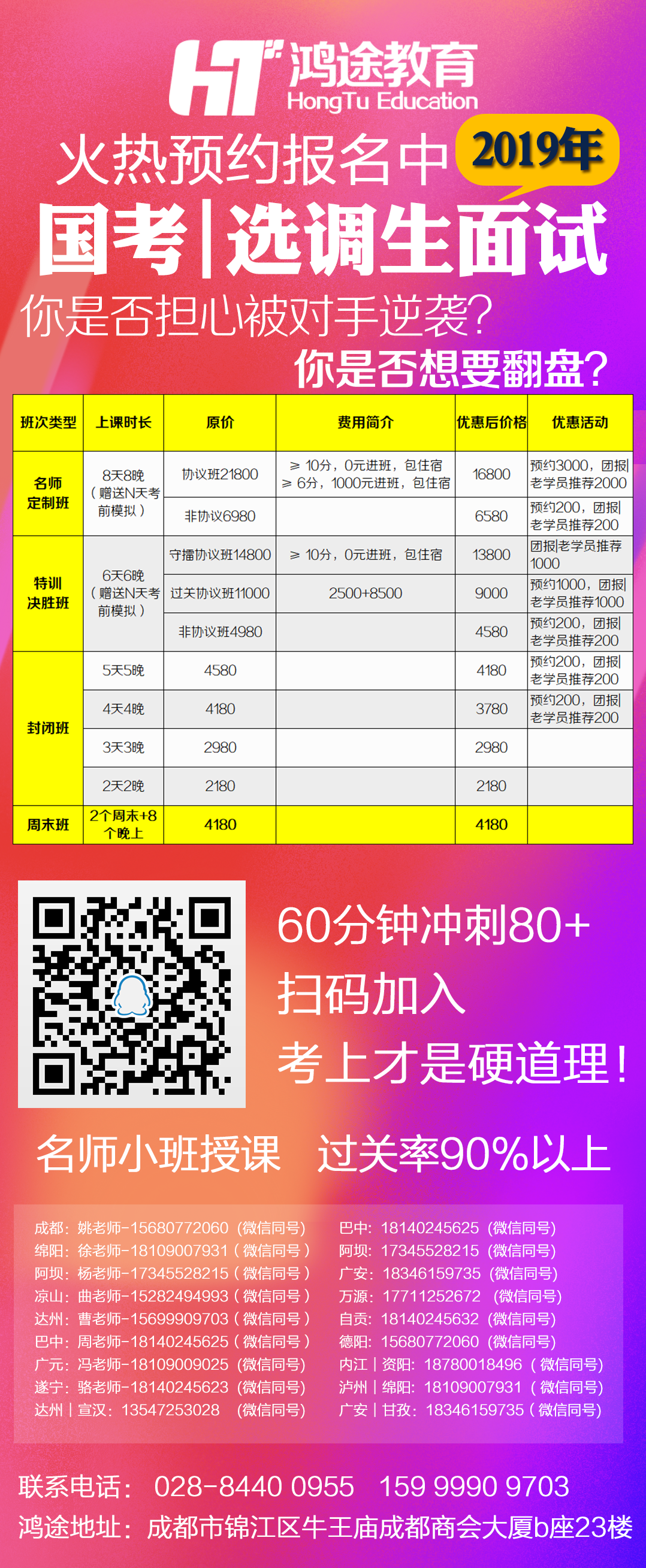根據(jù)筆試情況,部分職位選調名額與進入資格復審人數(shù)之比未達到1:3。按照《四川省2019年度選調優(yōu)秀大學畢業(yè)生到基層工作公告》的規(guī)定,現(xiàn)就這部分職位進行調劑遞補,具體處理辦法為:
