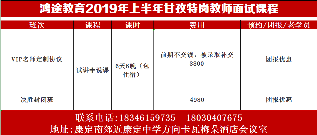 當(dāng)前位置:首頁 > 公招信息 > 2019年甘孜特崗教師面試課程