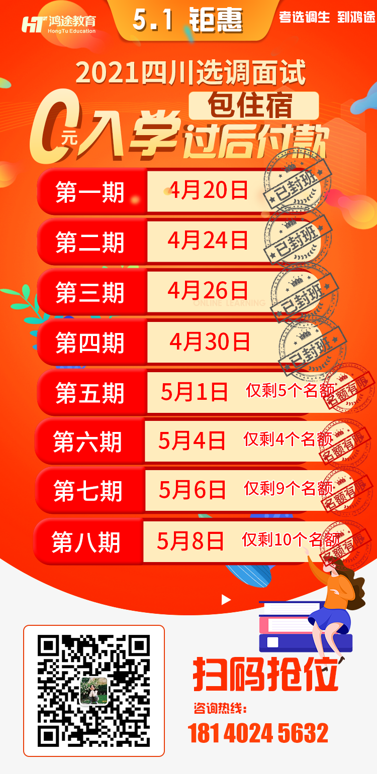 當(dāng)前位置:首頁 > 公招信息 > 2021四川選調(diào)生面試培訓(xùn)班(4月30日.5月4日開課)