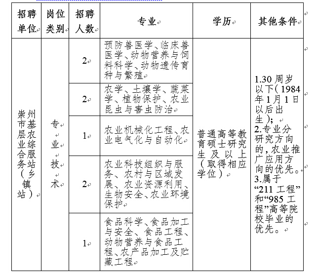 為加強(qiáng)崇州市農(nóng)業(yè)農(nóng)村方面的人才隊(duì)伍建設(shè),根據(jù)《成都市事業(yè)單位公開招聘工作人員試行辦法(2011年修訂稿)》要求,結(jié)合崇州市委、市政府《崇州市事業(yè)單位引進(jìn)高層次人才辦法(試行)》規(guī)定,按照“公開、平等、競(jìng)爭(zhēng)、擇優(yōu)”的原則,現(xiàn)面向社會(huì)公開考核招聘農(nóng)業(yè)農(nóng)村方面高層次人才8名。本次招聘為編制內(nèi)招聘,招聘人員按事業(yè)單位人員聘用制管理,F(xiàn)將招聘工作的有關(guān)事項(xiàng)公告如下: